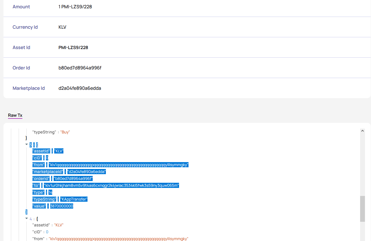 On our NFT Art Gallery marketplace (3% fee), the fee is clearly shown in the transaction details, but we can’t find a matching incoming transaction on our marketplace wallet in KleverScan (example: 3,870 KLV). This has happened multiple times.